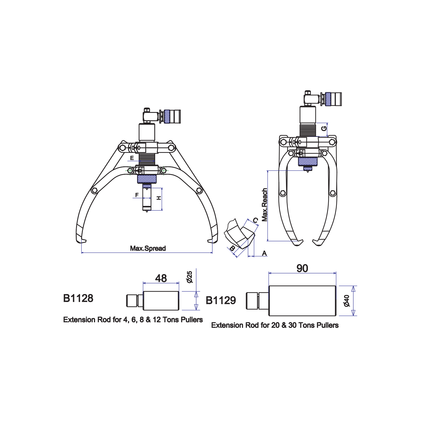 These type of pullers will require Hydraulic pumps to operate. for different packages with different type of pumps refer to Package Selection.